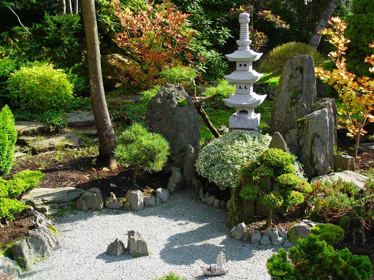 Реже встречаются в садах, но отлично смотрятся квадратные башни из камня, называемые пагодами. На фото можно увидеть, что они состоят из нескольких нечетных ярусов, как и фонари, имеют плоские крышу и основание. Возвышаются над землей на 1-3 м. Вокруг них можно разместить низкорослые кустарники или группы из валунов. Хорошим местом для пагод является берег пруда или открытый участок сада. Иногда люди обустраивают в своих садах целые беседки в виде пагод и пьют там чай.