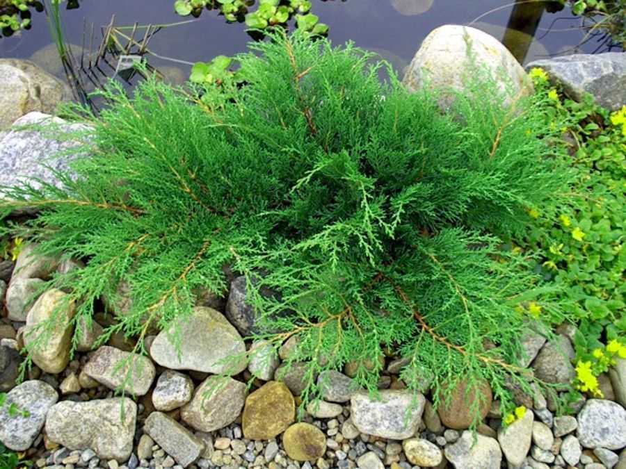 Карликовые сорта можжевельника (J.h. Blue Pygmea, J.h. Hughes).