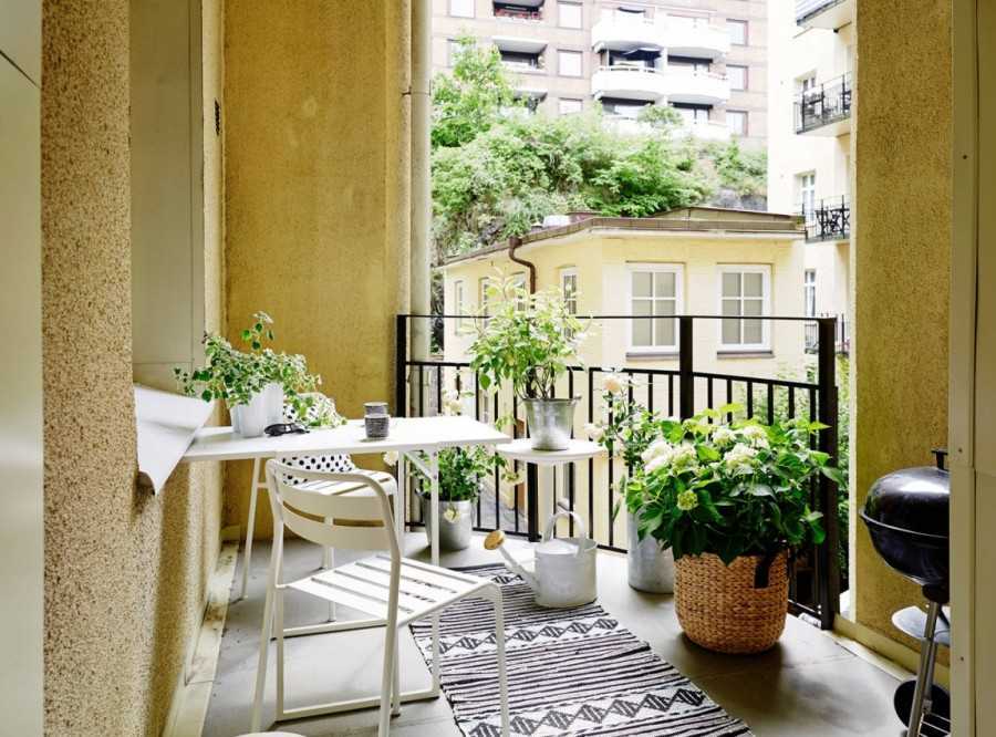 Если в доме принято много и вкусно готовить, то дополнительное пространство открытого балкона в летнее время может служить столовой на свежем воздухе, а зимой здесь будет удобно хранить овощи и фрукты в самодельном погребке. Нет смысла застеклять балкон, если он очень маленький (3 кв. м).