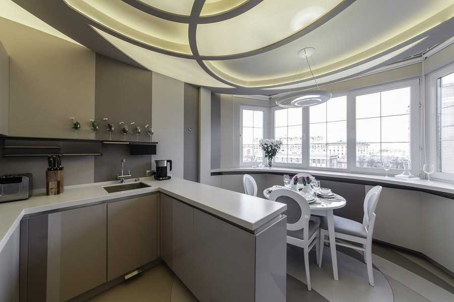 Одно из самых популярных решений для небольших кухонь. На балкон можно вынести обеденную зону, кухонное рабочее пространство или барную стойку с холодильником и полками для хранения.