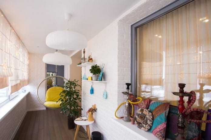 Занавеси должны, не только гармонировать с различными элементами интерьера лоджии, но и соответствовать особенностям этого помещения.