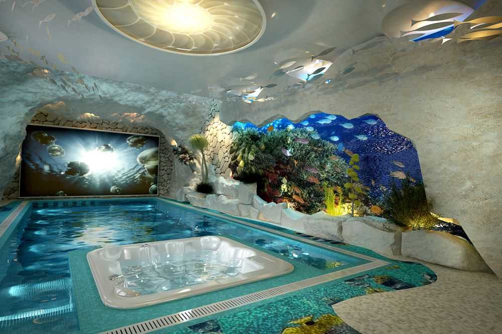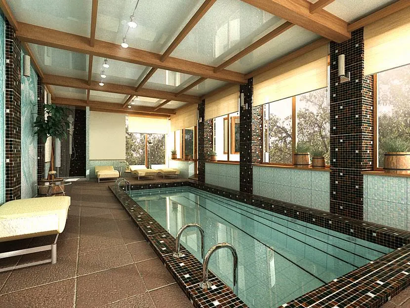 Бассейн в загородном доме: дизайн в интерьере и экстерьере