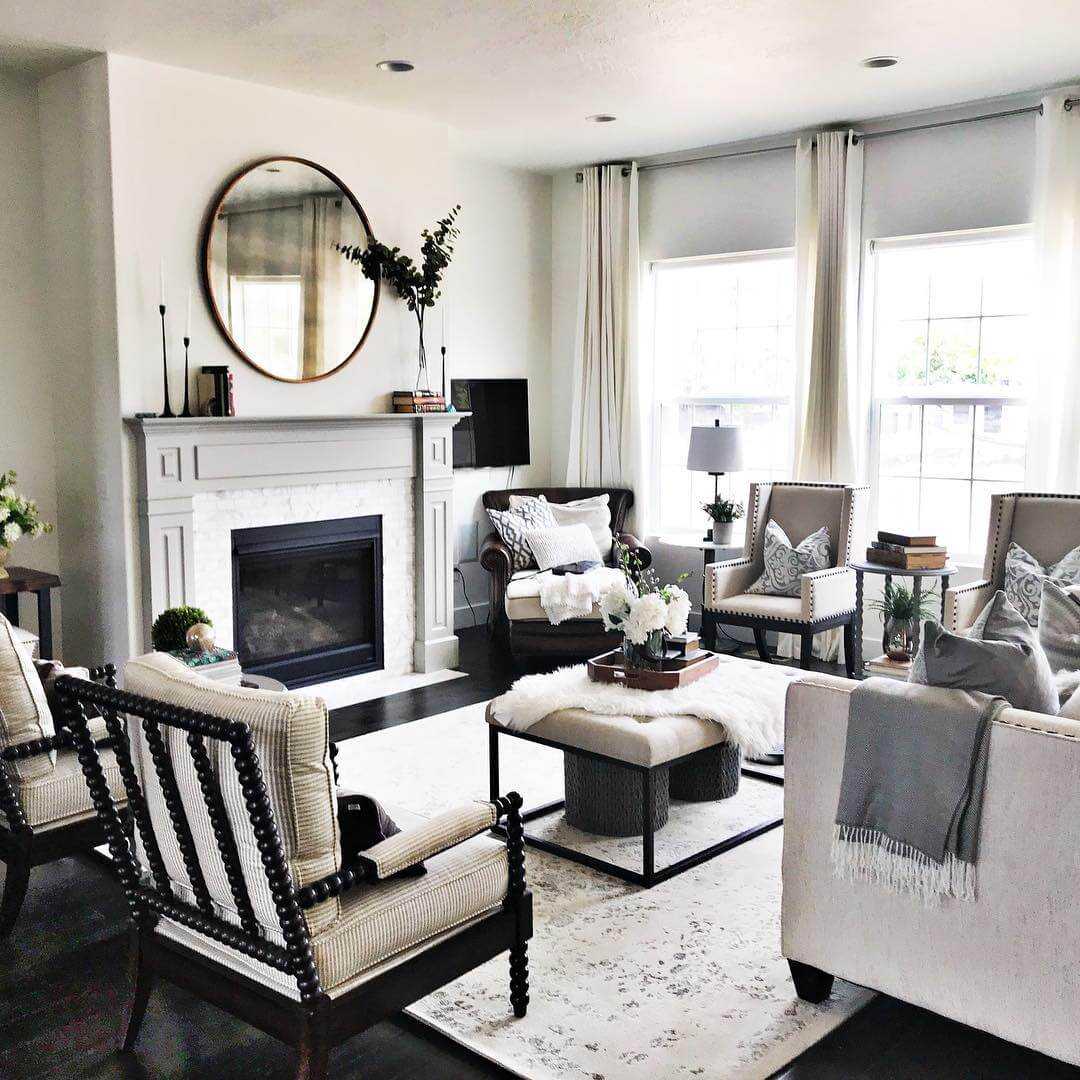 Само собой разумеется, что в уютной белой гостиной необходимо удобное кресло. Что вам больше всего нравится делать в вашей белой гостиной? Читать? Смотреть телевизор? Общаться с семьей или друзьями? Ответы помогут вам определить стиль мебели от формы до размера и композиции. Гостиная — это общая комната, поэтому мебель должна способствовать общению и взаимодействию.
