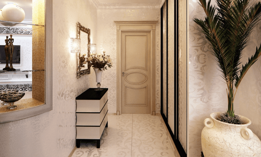 - Уменьшение потребности в дополнительном освещении. В коридоре обычно нет оконных проемов, поэтому он может выглядеть темным и мрачным при недостатке осветительных приборов. Оттенки белого, бежевого и слоновой кости способны визуально усилить освещение, в результате можно значительно сэкономить на электричестве.