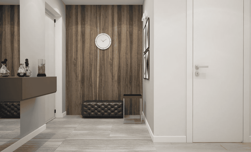 Еще один вариант – деревянные панели. Он актуален только для просторных прихожих. Маленькие дерево на стенах способно визуально дополнительно уменьшить.