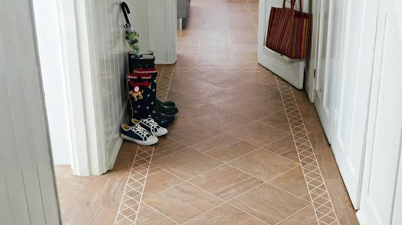 Можно оформить пол возле входной двери кафелем, а остальную поверхность выполнить из дерева. Переход скрывают с помощью металлической планки. Такие изделия отличаются прекрасными эксплуатационными качествами и долго служат владельцам, не истираясь и не теряя изначальных свойств. За этими материалами несложно ухаживать, их легко привести в надлежащий вид подручными средствами.
