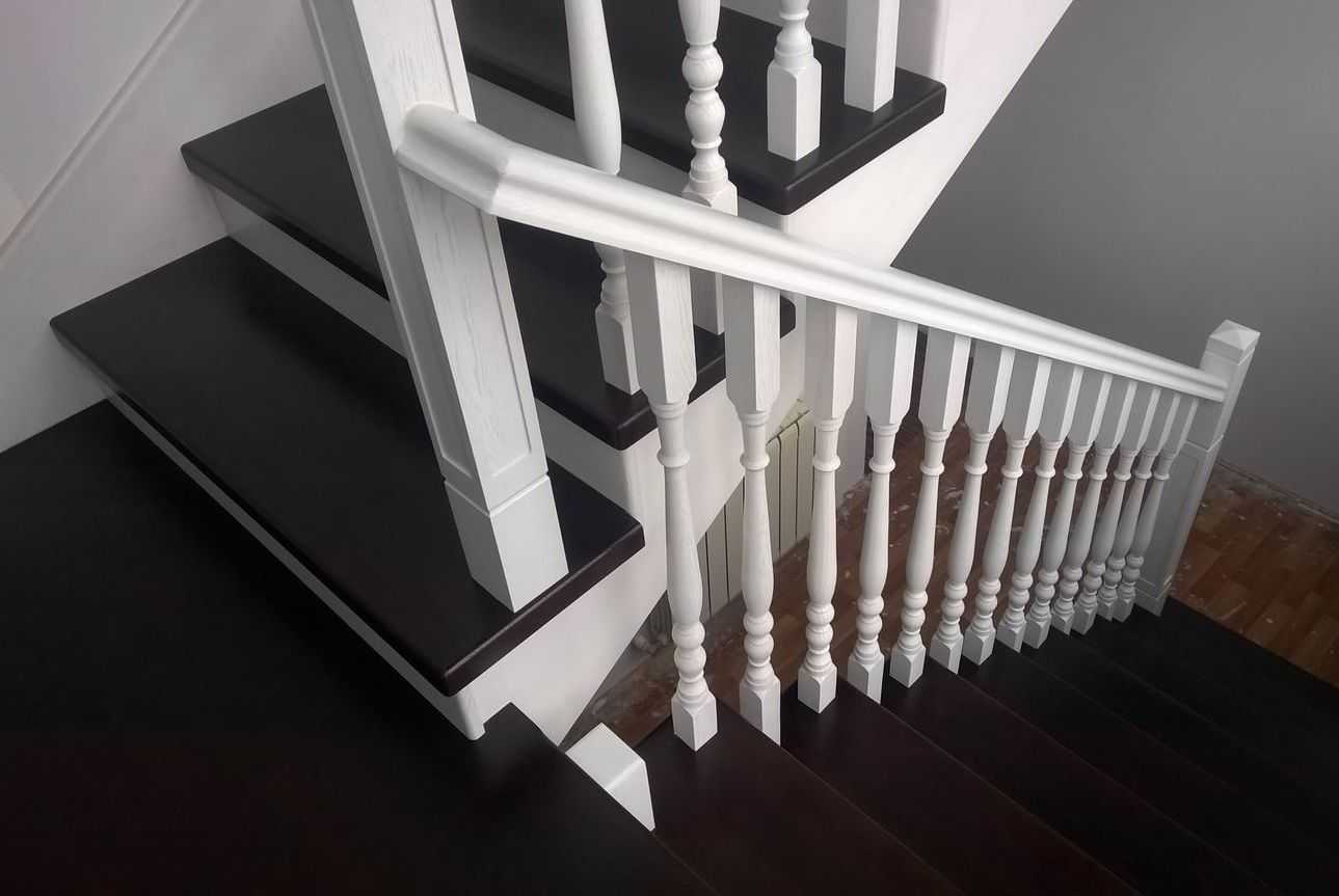 - Опорные стойки по высоте должны равняться соответствующему размеру балясин, но если они устанавливаются не на ступеньки, а на пол, то к этой высоте прибавляется расстояние от ступенек до пола.