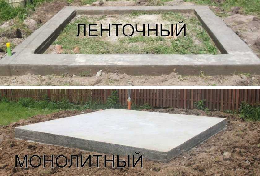 На подготовленном участке выкопайте яму для фундамента. При планировании ленточного фундамента, бетонируется только периметр (выкапывается траншея глубиной порядка 50 см, возводится опалубка, выполняется армирование и заливается бетонная смесь). Создавая монолитный фундамент, выкопайте яму размером с основание постройки, возведите по периметру опалубку. Из прутьев сварите армирующее основание. Залейте всё бетоном.