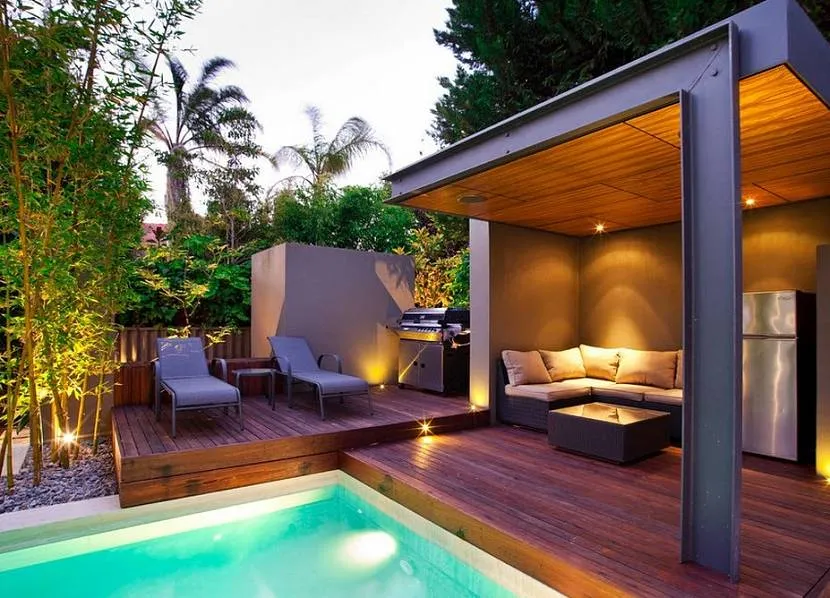 Поэтому перед строительством найдите объективные причины строить такую большую зону отдыха и переплачивать за масштаб. Если их нет, то отдайте предпочтение классике — 3 на 3 метра.