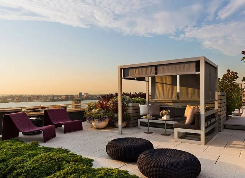 Это настоящее произведение искусства, лёгкие конструкции выглядят элегантно, а монтаж не требует больших затрат. Навес и стены выполняют из обычных материалов, которые оплетают живые растения.