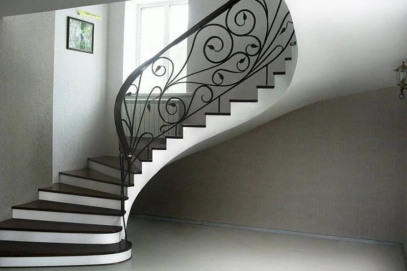 Как уже было сказано, винтовая вариация не совсем комфортна в использовании, но очень компактна и красива. Как правило, конструкция помещается в круг с центром в опорной стойке и радиусом равным длине ступени.