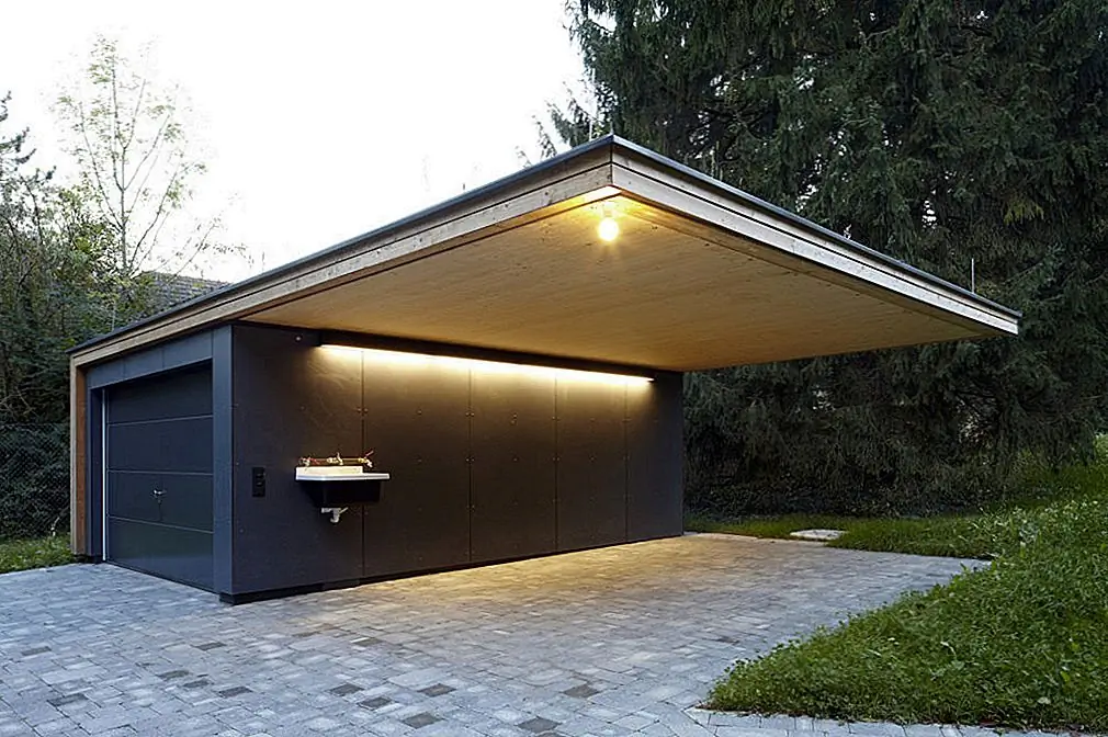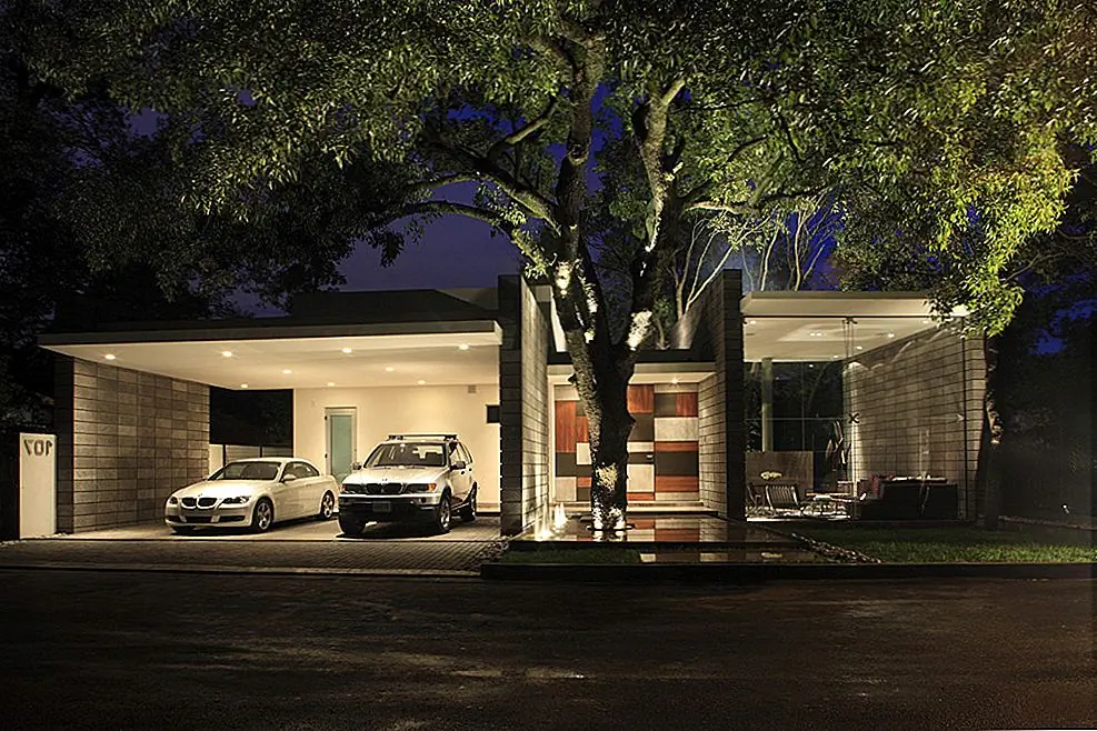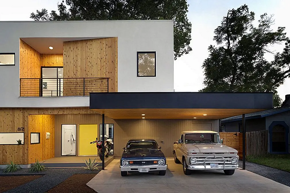 Технически, открытый гараж предлагает такое же пространство, как и замкнутое, но разница заключается в отсутствии стен и дверей, а также в целом ощущение свободы и открытости. Архитектура Matt Fajkus приняла стиль, когда они спроектировали эту резиденцию в Остине, штат Техас.