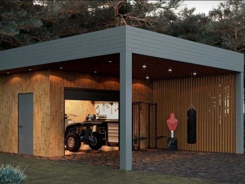 Преимущества гаражей с хозблоком и навесом