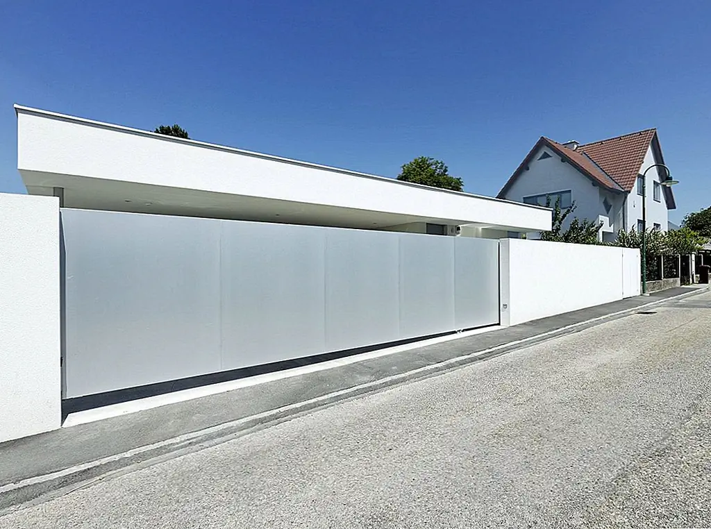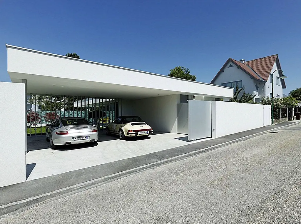 Конфиденциальность иногда воспринимается очень серьезно, и многие дома спроектированы с закрытыми уличными фасадами или буферными зонами между улицей и внутренними жилыми помещениями. Одним из примеров является House A & B, который находится в Австрии. Он был спроектирован Smertnik Kraut Architekten и имеет белый фасад и длинную систему раздвижных дверей, которая скрывает минималистский гараж на 2 машины.