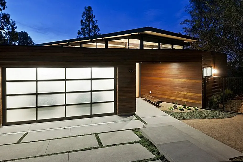 Эта резиденция из Брентвуда, штат Калифорния, была построена в области с строгими правилами, которая была ограничена одноэтажным фасадом с улицы и вдохновленным в середине века дизайном, основанным на смеси деревенских и современных элементов. Дизайн, созданный архитектурой Nonzero, очень интересен в том смысле, что он позволяет дому быть довольно большим, но выглядит низкопрофильным и довольно скромным. Все это делается путем тщательного позиционирования томов и умного выбора материалов и форм. Гараж, который достаточно большой для двух автомобилей, имеет полупрозрачную дверь, которая пропускает светофильтр, что делает объем открытым и воздушным.