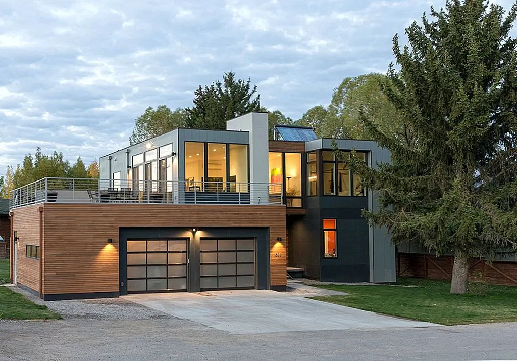 США Этот дом, расположенный в Вайоминге, США, является одним из шести сборных модулей, созданных Method Homes. Это был проект Chris Pardo Design: Elemental Architecture, дизайн которого хорошо сбалансирован, с объемным объемом древесины, который включает в себя гараж на два автомобиля и который контрастирует с светлыми томами, которые его создают. Часть гаража выступает в качестве платформы для открытой террасы.