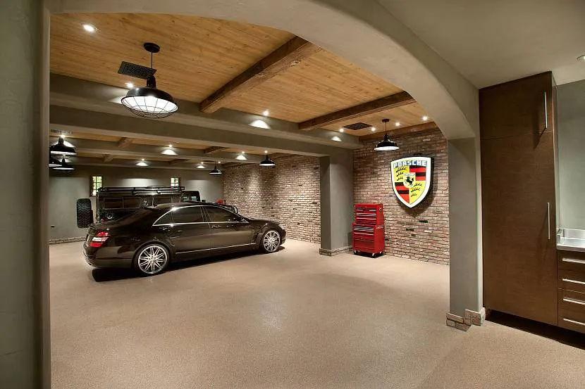 Если есть габаритный гараж, то его можно оформить самым различным способом. Допускается обшивка натуральным деревом. Стены можно оставить кирпичными без финишной отделки. Таким образом получится стиль интерьера гаража «лофт». Для современных ценителей искусства даже в техническом помещении такой вариант придется по вкусу. Приветствуется минимум мебели и достаток свободного пространства.