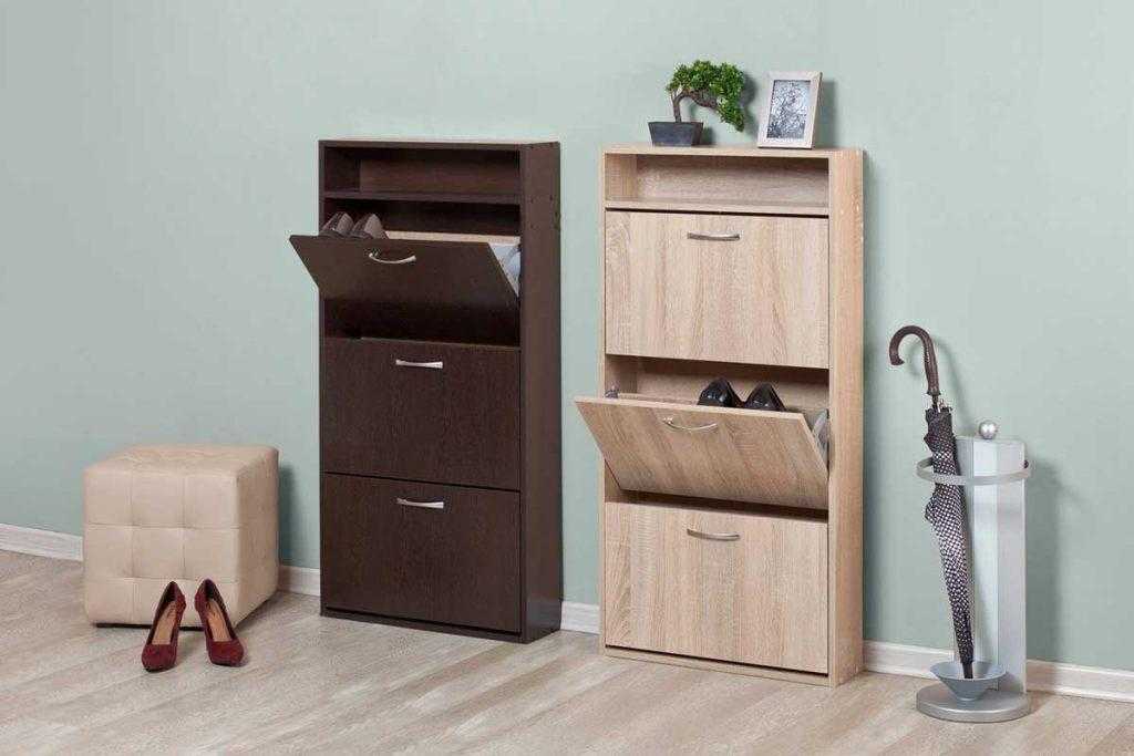 Для небольшого помещения лучше выбрать угловые шкафы и полки для обуви.