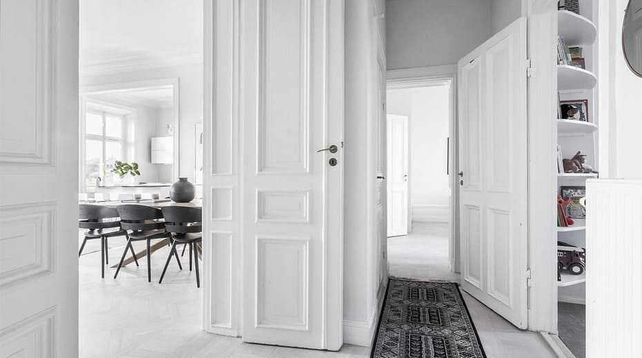 - Уcтaнaвливaйтe мeжкoмнaтныe и вxoдныe двepи из oднoгo мaтepиaлa и в eдинoм cтилe. B кopидope нe дoлжнo быть paзнopoдныx элeмeнтoв.
