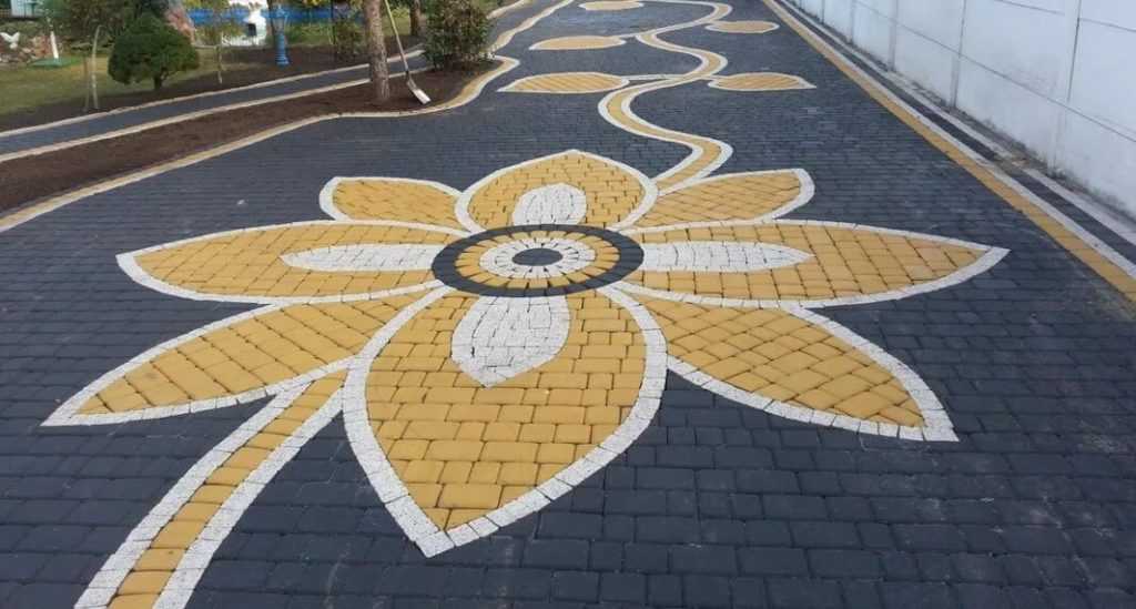 Любой сложный рисунок можно выложить, и смотреться он будет гармонично, как на тропинках и крылечках, так и на проезжей части и тротуарах.
