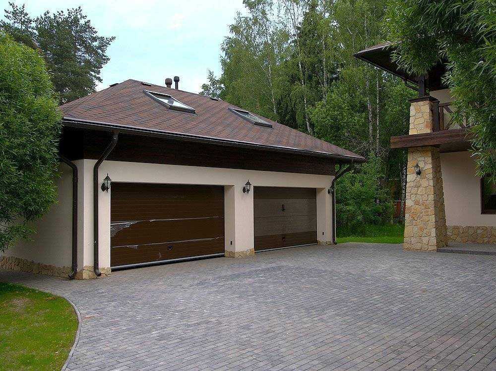 Двухэтажный гараж достаточно массивная тяжелая постройка, поэтому под ним нужен хороший фундамент. Территорию вокруг можно облагородить и покрыть, например, плиткой. Это обеспечит комфортный заезд автомобиля.