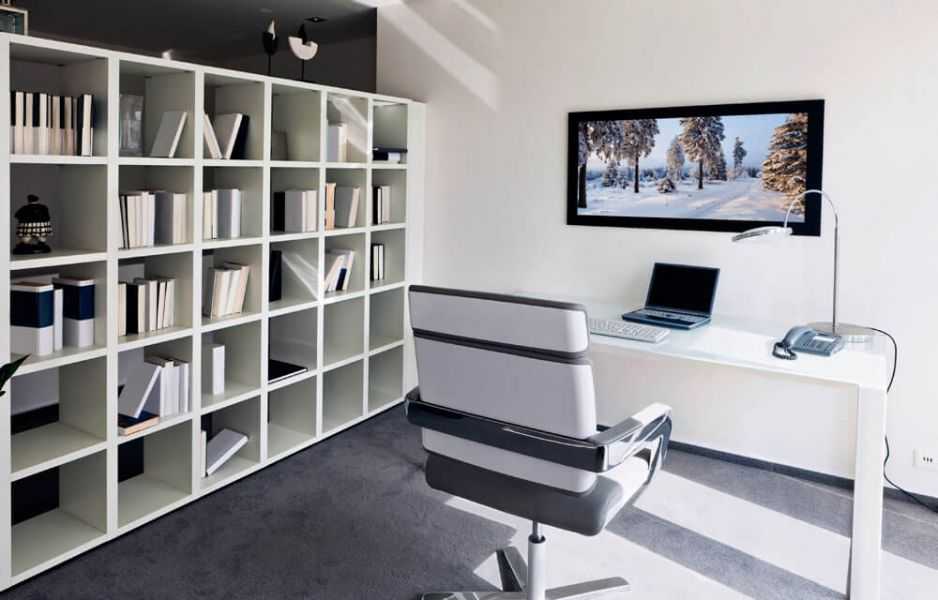 Достичь этого можно при помощи грамотного зонирования пространства. Так, в любом кабинете должны присутствовать рабочая зона и зона отдыха. Зонировать пространство можно при помощи цвета (светлый и темные тона).