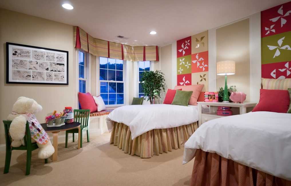 или пастельные оттенки для стен. Яркими цветовыми акцентами в детской спальне могут