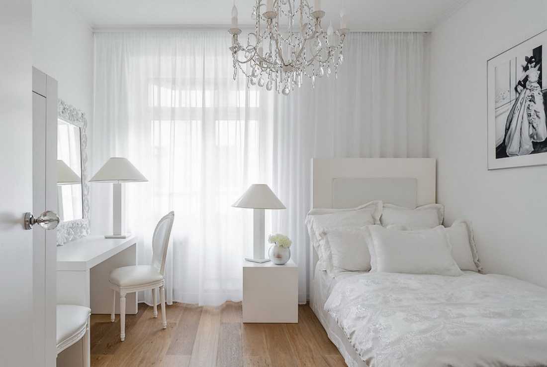 Для организации помещения площадью в 7-8 кв.м используются те же приемы, которые были описаны выше: светлые тона, многофункциональная мебель, минимум декора. Но хотелось бы добавить, что тумбочки, книжные стеллажи, платяные шкафы и комоды предпочтительно выбирать не стандартных, а уменьшенных компактных размеров. Например для стеллажа более оптимальной будет глубина 28 см, а не стандартные 36 см. Или в маленькое помещение логичнее приобрести компактный комод с глубиной 45 см, а не 60 — 75 см. Выбирая шкаф отдайте предпочтение модели с раздвижными, а не распашными дверцами. Каждым сантиметром следует рационально распорядиться, поэтому смело применяйте всевозможные хитрости и приемы.