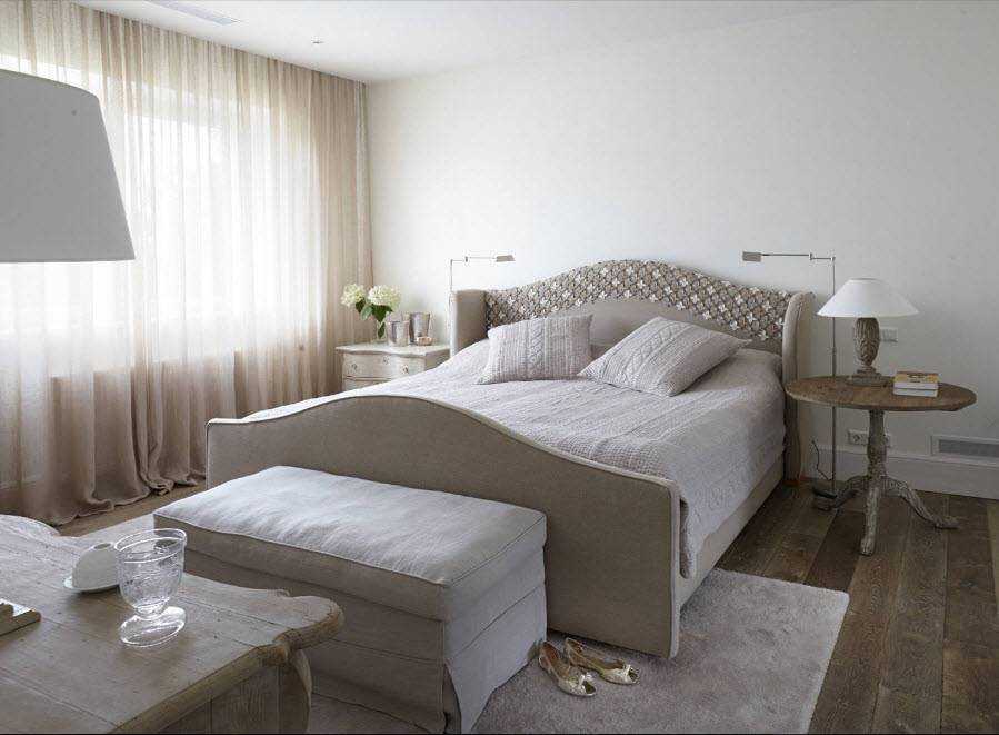 Дизайн в стиле шебби-шик, с элегантной мебелью, нежной палитрой и красивыми украшениями, актуален в 2023 году. Характерны кровати с резными изголовьями и балдахинами, мягкие пуфы и пушистые ковры.