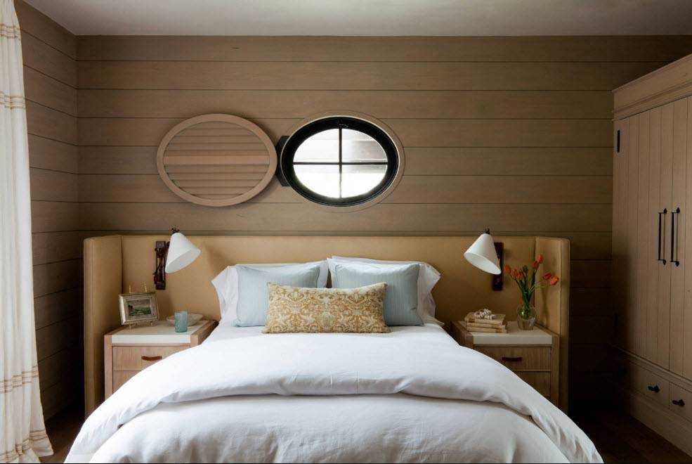 Интересным будет сочетание фотообоев с пейзажем и ровных однотонных полос. Еще один вариант оформления стен – на покрытии расположить яркие элементы: декоративные арки, светильники-бра, картины или зеркала.