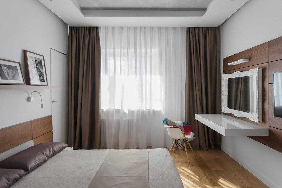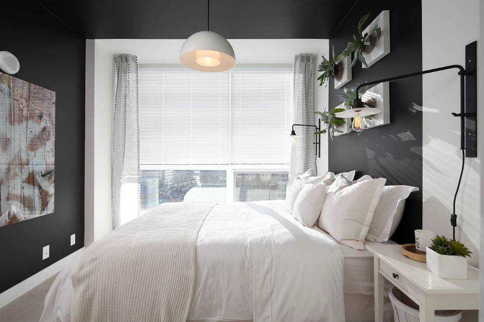 В спальне лучше использовать сочетание светлых и темных тонов. Нежности и неги в помещение добавит белая мебель. Для обоев и штор лучше выбрать светлые оттенки, а для постельного белья, наоборот, темные. Темное белье сделают акцент на кровати, при этом оно создаст ощущение уюта и тепла.