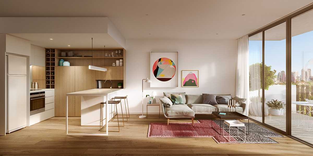 Для создания уютной обстановки используют сочетание белого, цвета топленого молока и яркие древесные оттенки. Матовые светлые поверхности хорошо комбинируются с белым глянцем. Привнести настроение в дизайн можно с помощью разноцветных подушек и ковра.