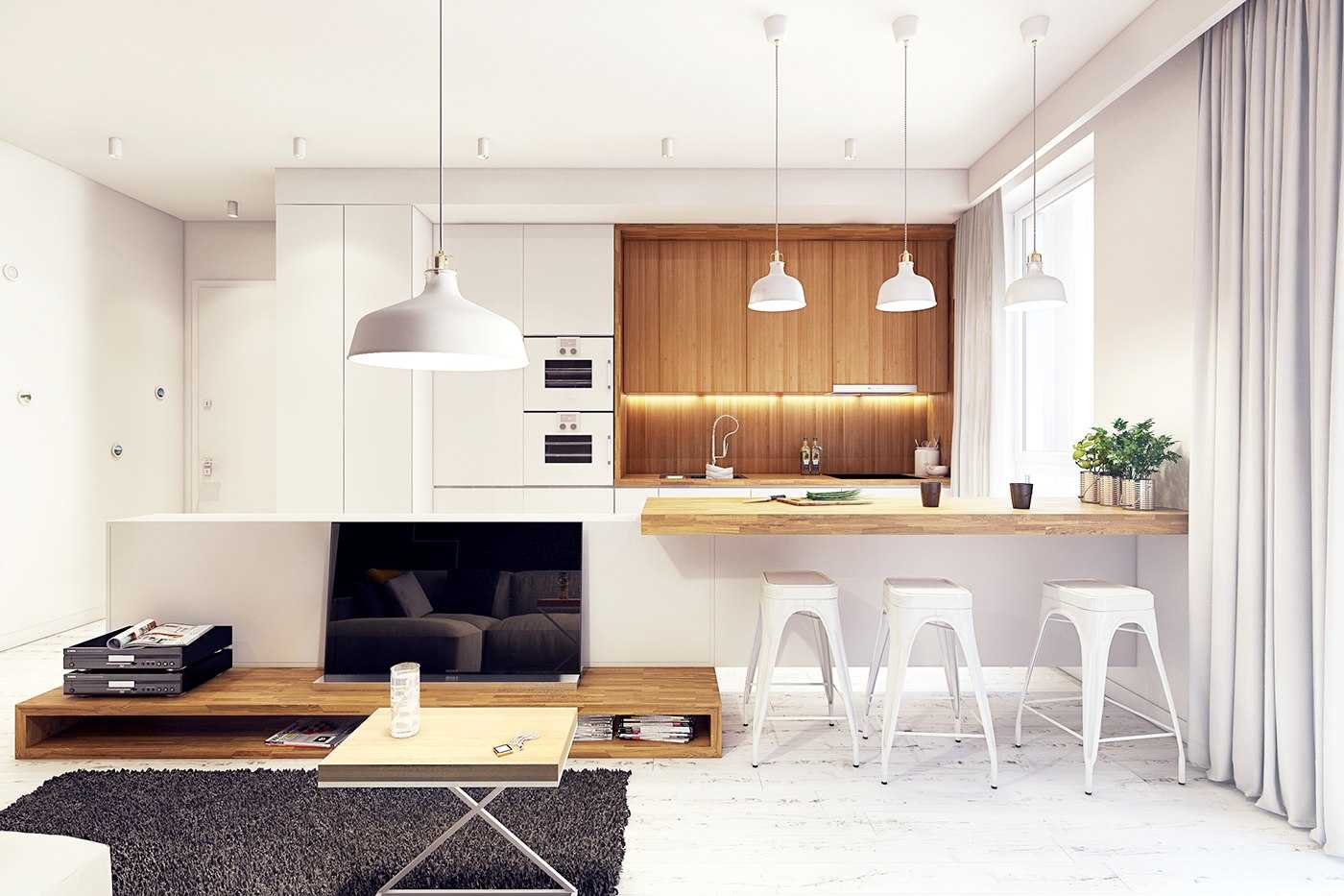 Вне зависимости от того, какой кухонный дизайн вы предпочтете, светлый оттенок стильно подчеркнет статусность помещения и правильно расставит акценты. Рассмотрим популярные дизайнерские вариации и стили с использованием белого в кухне-гостиной.