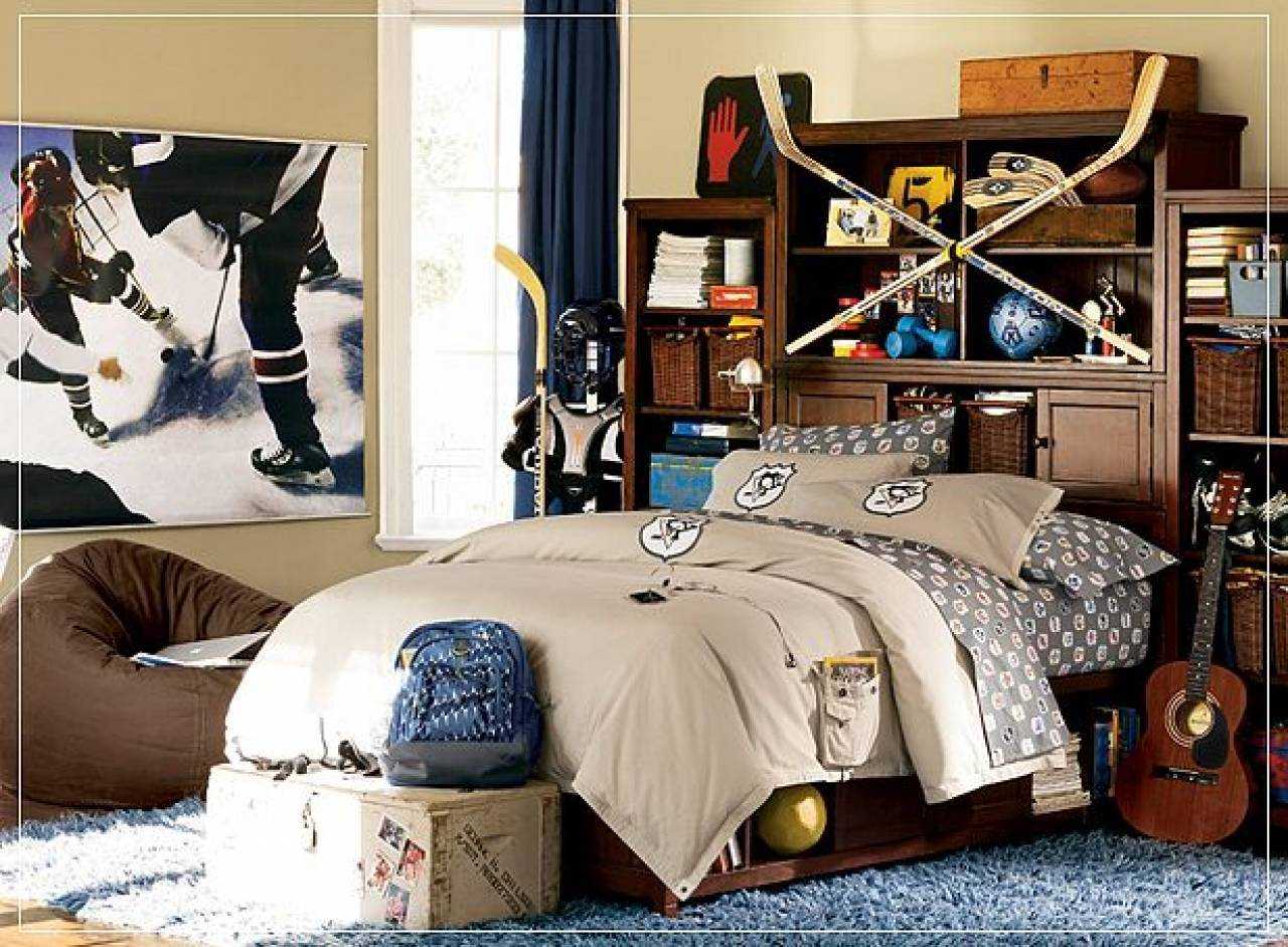 В комнате для будущего спортсмена будут уместны аксессуары, имеющие спортивную символику, постеры с футболистами, баскетболистами, хоккеистами и другими кумирами. Хорошим решением станет украшение пола ковром с футбольным полем или теннисным кортом.