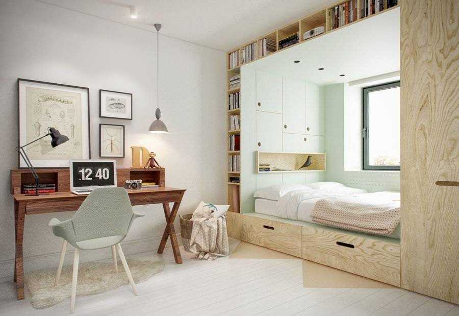 Внимательно посмотри на модульные конструкции и на многоуровневую мебель. Сейчас есть много гарнитуров, в которых шкаф, кровать, стол и полки совмещены в одну двухэтажную систему. А если есть подиум и гипсокартонные конструкции – встрой в них выдвижные ящики.