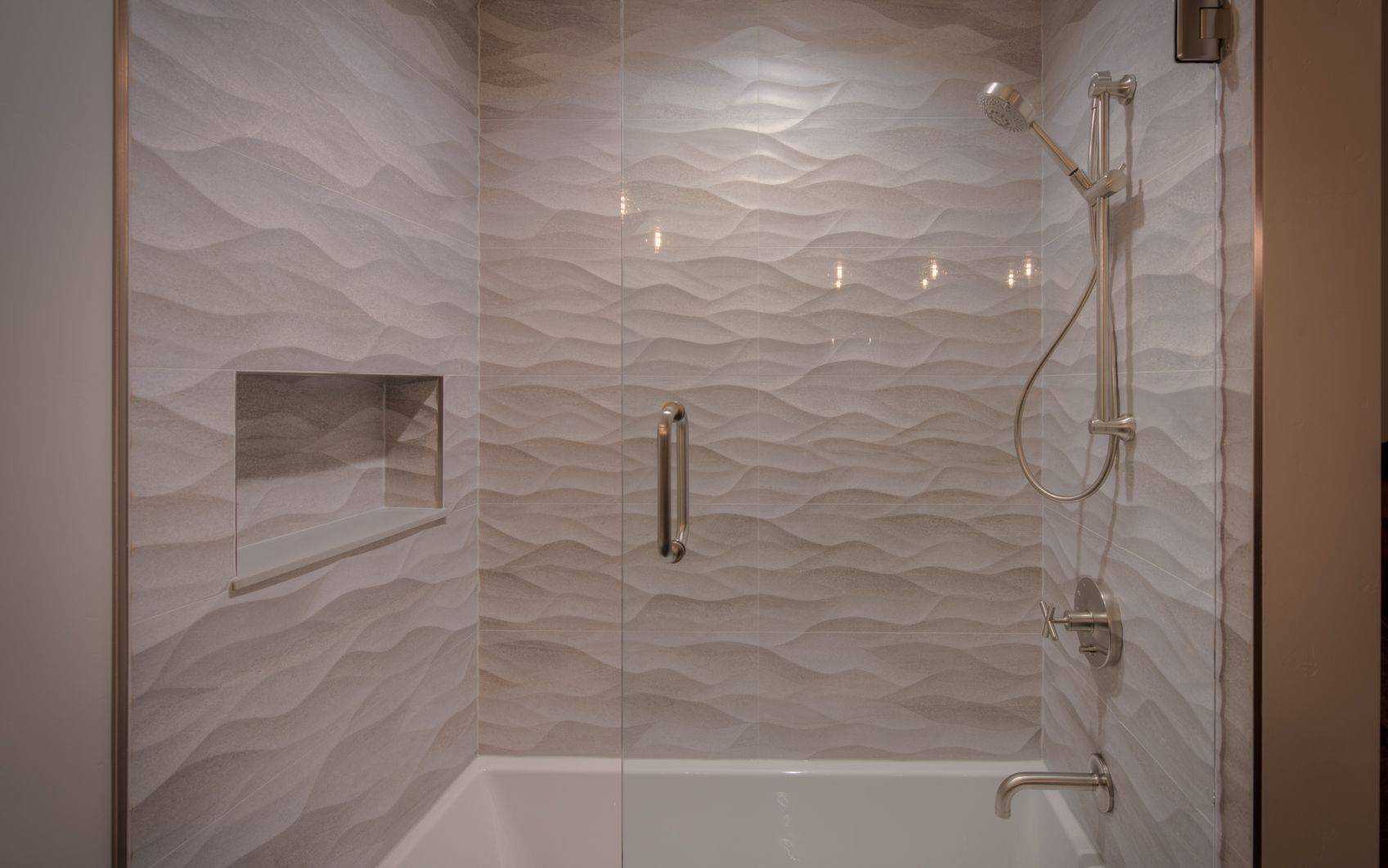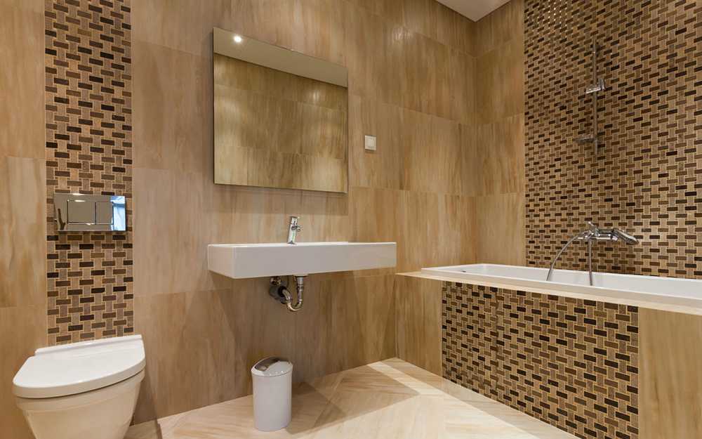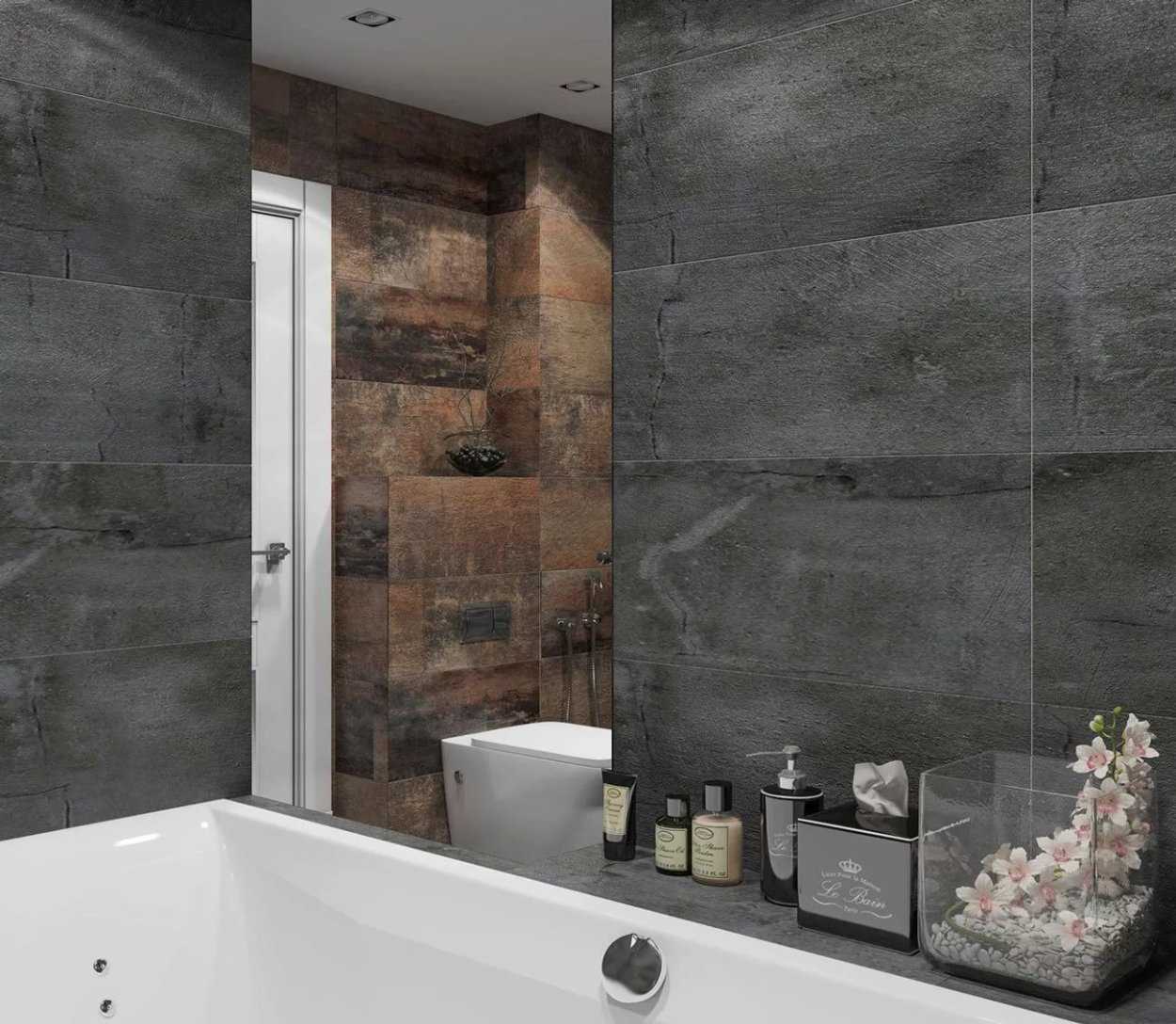 Во избежание однообразия кафель для ванной можно подобрать в разных оттенках, с разными фактурами. Он может отличаться даже по размеру. Оригинально смотрится интерьер, в котором одна стена декорирована крупным кафелем, вторая – мозаика.