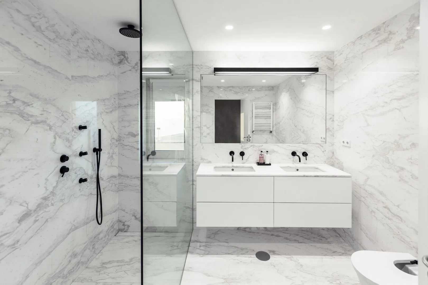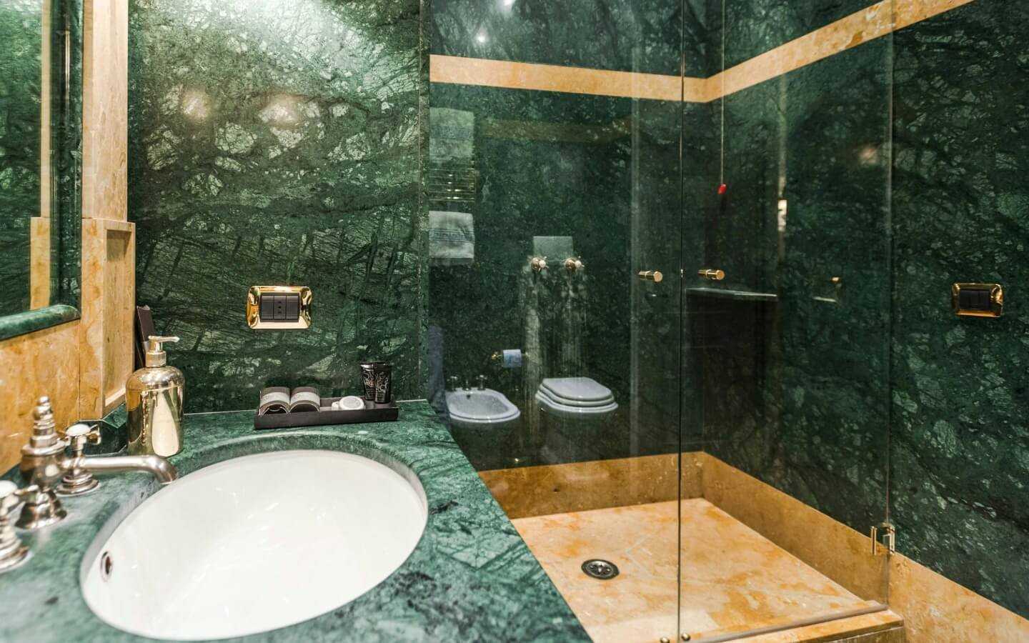 Разрабатывая дизайн-проект мраморной ванной комнаты, важно помнить о безопасности и практичности в последующей эксплуатации