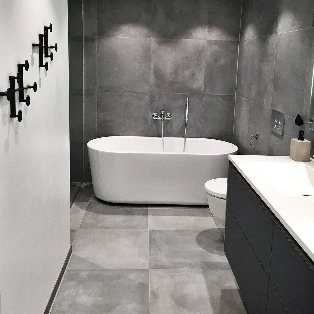 Если вы все еще обеспокоены тем, что ваша комната кажется слишком стерильной, добавьте немного контраста, используя бледно-серую напольную плитку.