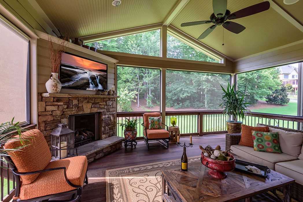 When your porch offers phantom screens, comfortable furniture, and a fabulous stone fireplace, outdoor living is perfect.![]()