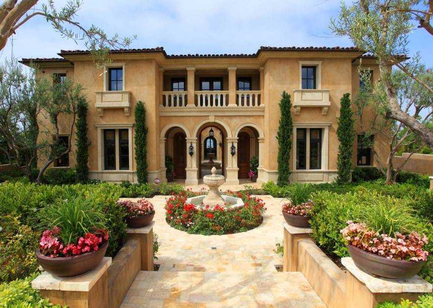 2. Этот средиземноморский дворик, расположенный в поселке Сильверлиф в Скоттсдейле, штат Аризона, украшен красивым фонтаном. Пышные и царственные сады украшены дорожками и красивой железной беседкой. (через Berghoff Design Group)