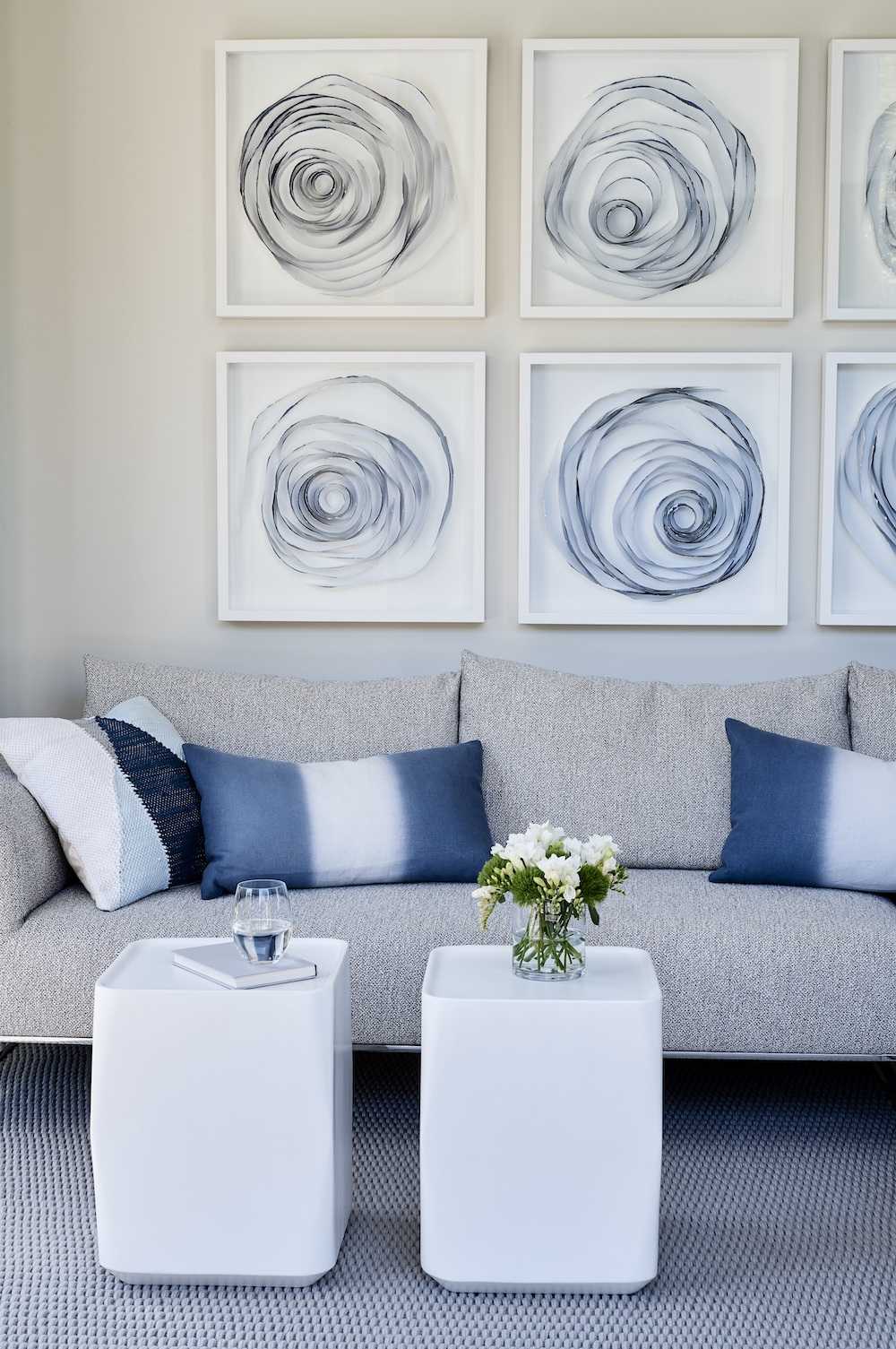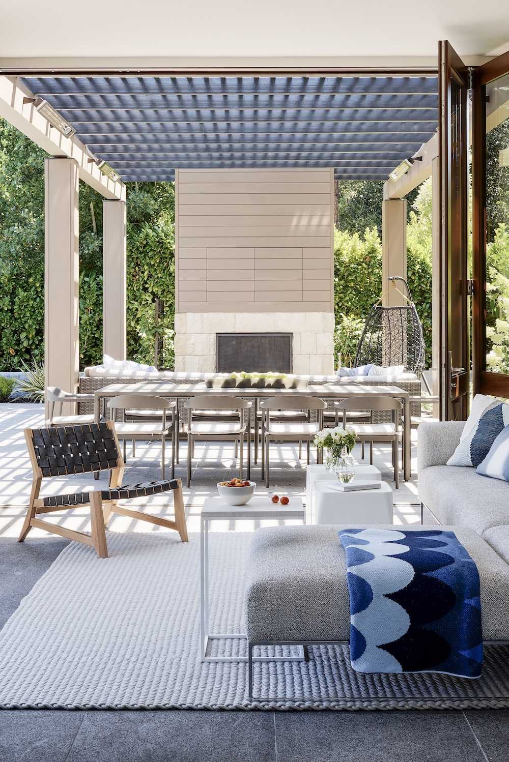 Этот дизайн дома у бассейна в этом обширном доме в Калифорнии является веским аргументом в пользу использования классической бело-голубой цветовой гаммы. Это может показаться очевидным, но эта комбинация является классической по какой-то причине, и в сочетании с мягкими оттенками серого, бледным деревом и большим количеством прекрасного естественного света она создает идеальное, безмятежное, успокаивающее настроение для дома у бассейна.