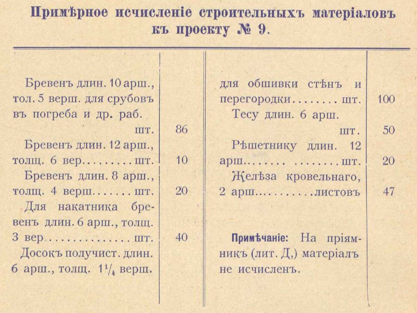 Большие окна первого и второго этажей (выходящие на главный фасад) разделены брусками и колонками на три части для того, чтобы оконные переплеты не были очень велики и могли удобно отворяться. С другой стороны эти окна, вследствие содержащейся в них большой площади стеклянной световой поверхности, будут давать большое количество света для комнат. На стр. 23 и 24 помещены детальные рисунки для таковых окон. На детальном рисунке для окна второго этажа (стр. 24) над пролетами окон помещены рисунки орнаментов, такие орнаментные украшения могут быть не резные, но писаные красками.