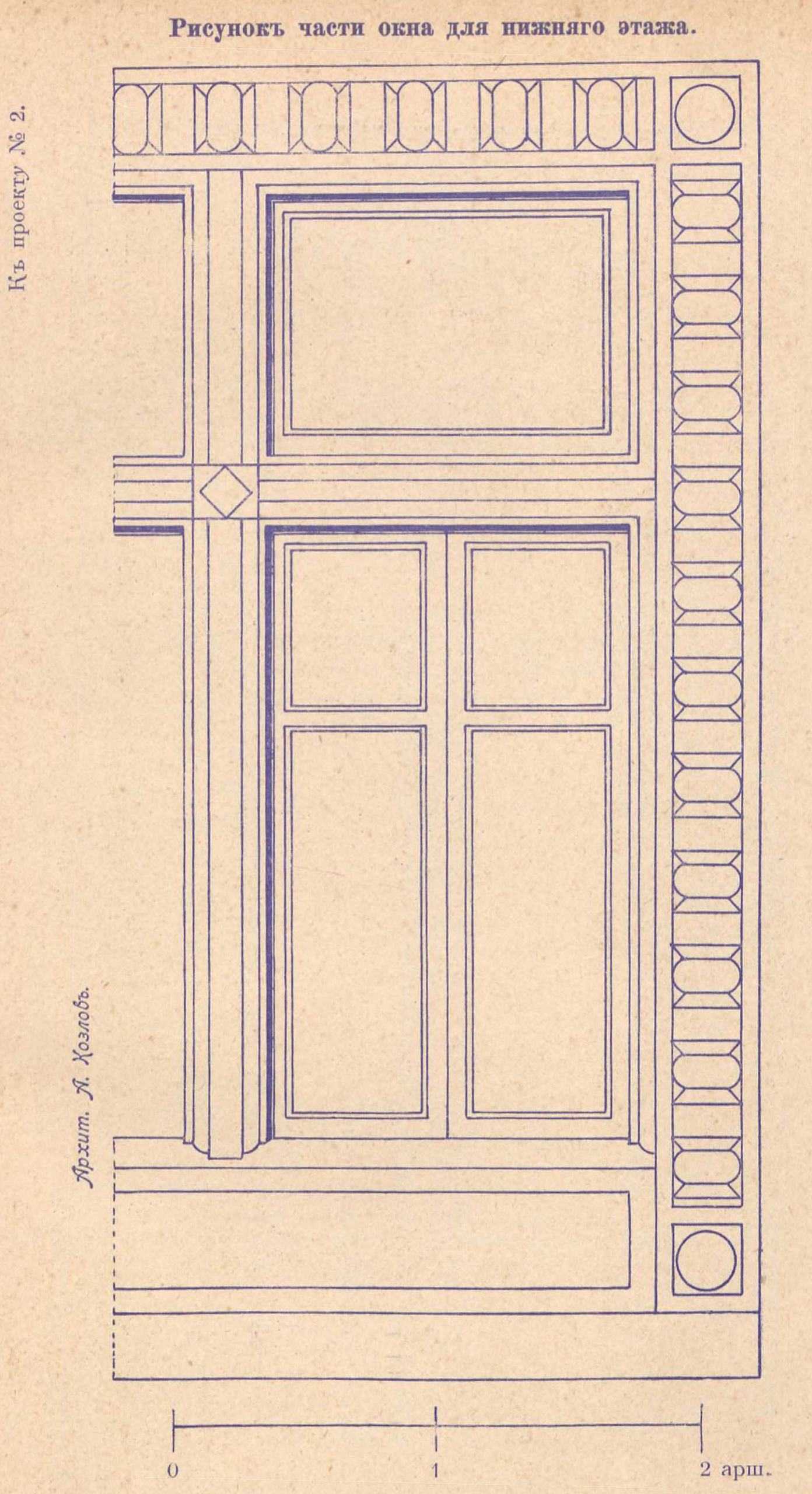 К проекту № 2. Архит. А. Козлов. Рисунок части окна для нижнего этажа.