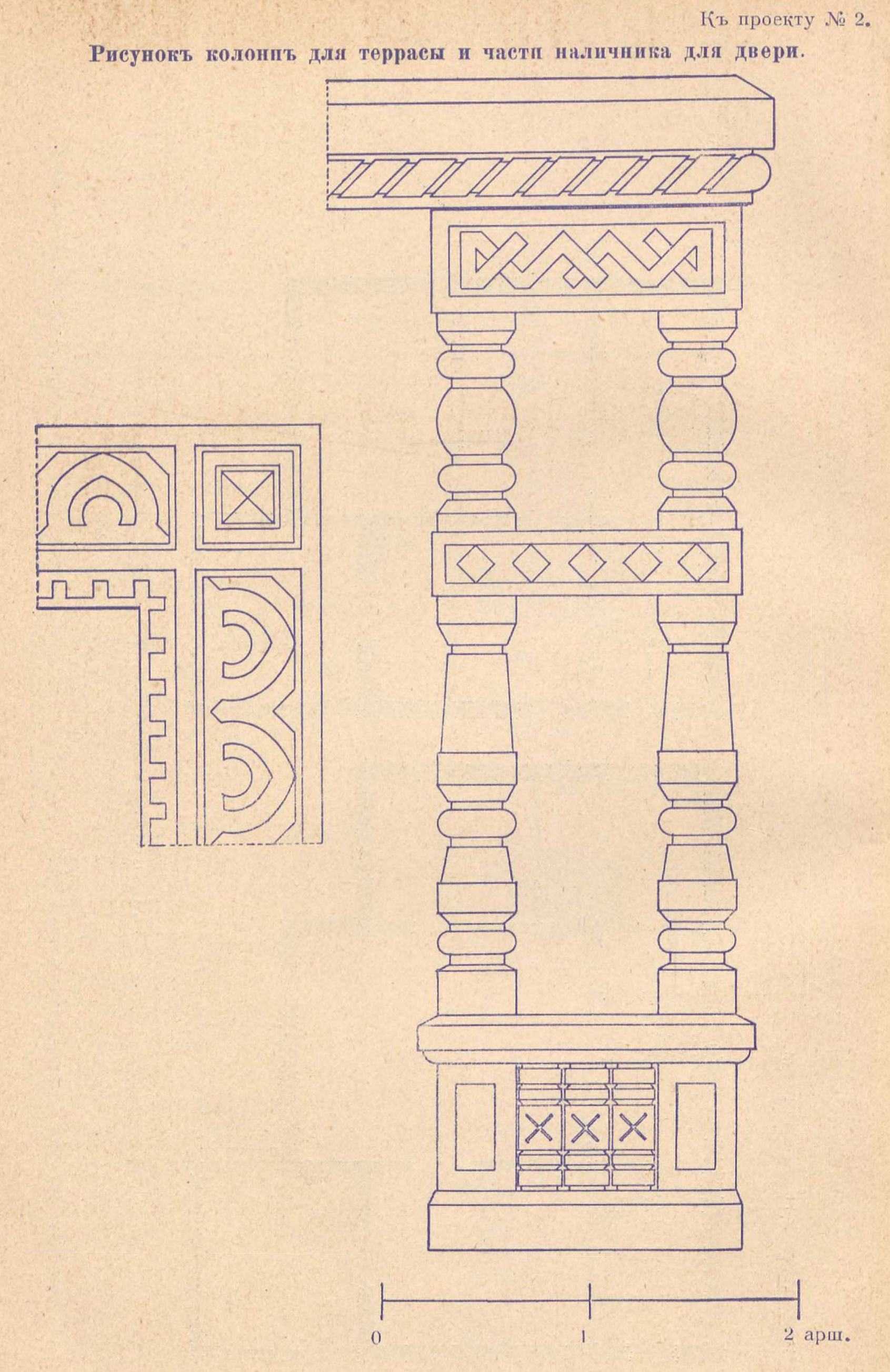К проекту № 2. Архит. А. Козлов. Рисунок колонн для террасы и части наличника для двери.