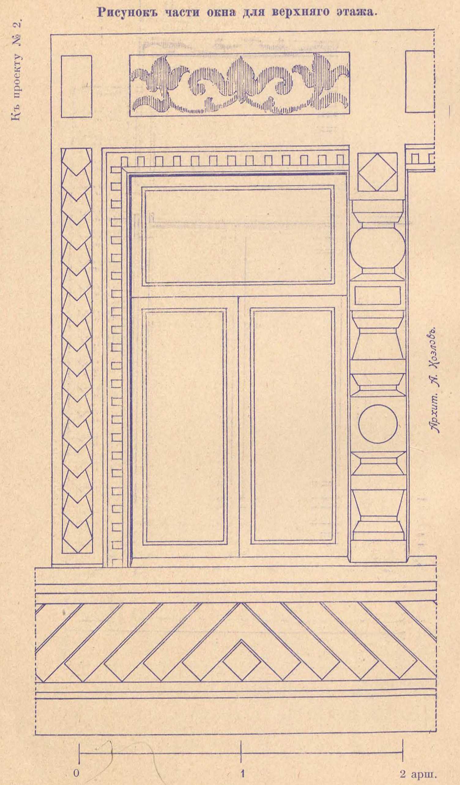 К проекту № 2. Архит. А. Козлов. Рисунок части окна для верхнего этажа.