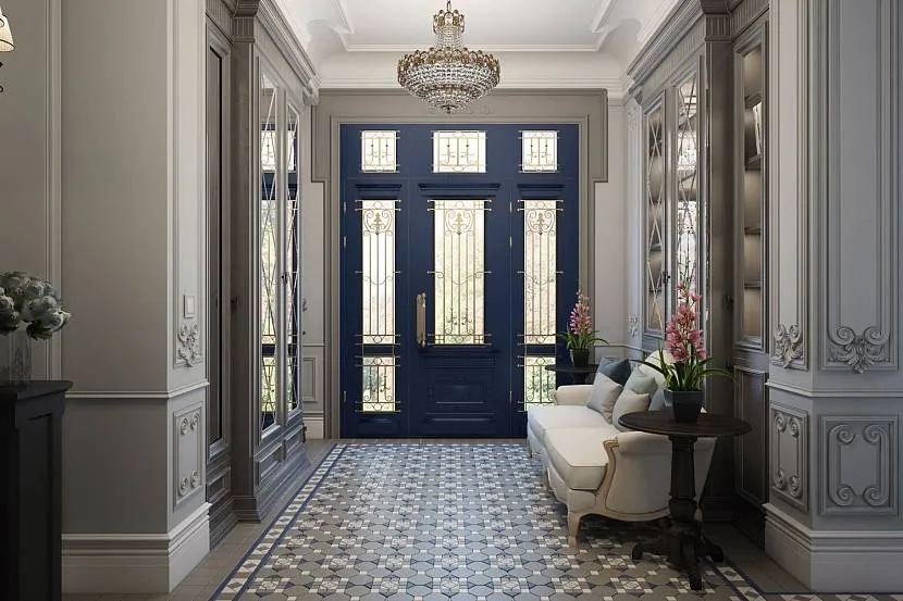 Классический интерьер подразумевает использование однотонного оформления. При желании можно использовать сочетания разных цветов, но не более трех. Удачный вариант для входной группы — один основной цвет и контрастный для расстановки акцентов.