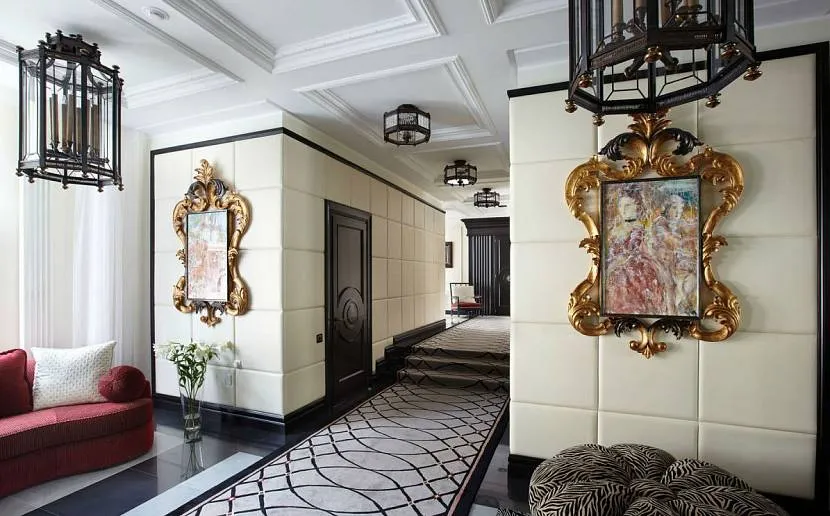 Прихожая, выполненная с элементами этих направлений, выглядит респектабельно и роскошно, подчеркивает достаток и процветание в доме