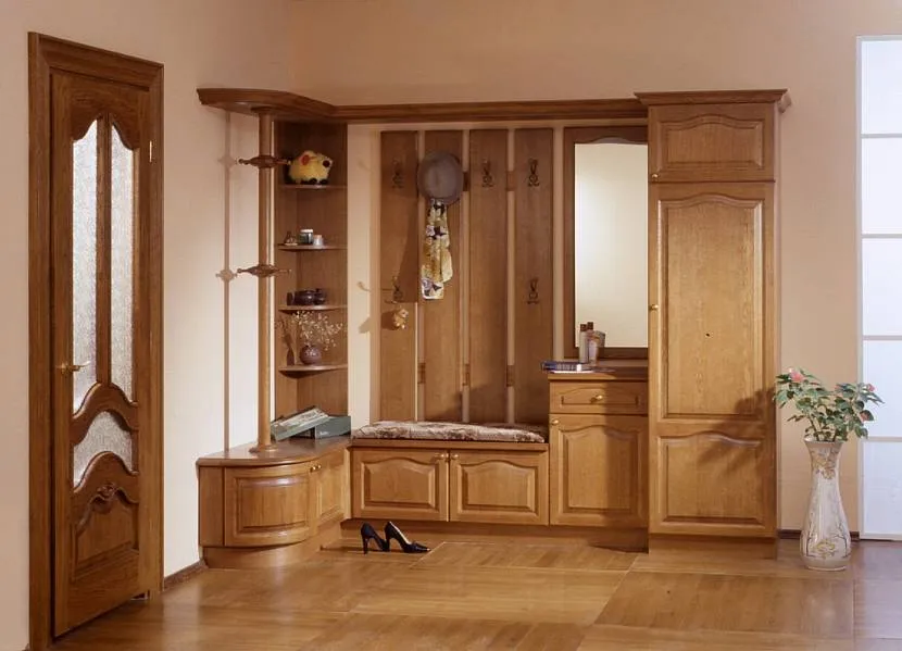 Сколько мебели будет в прихожей в классическом стиле, зависит от ее размеров. Для небольших квартир подойдет стандартный набор: