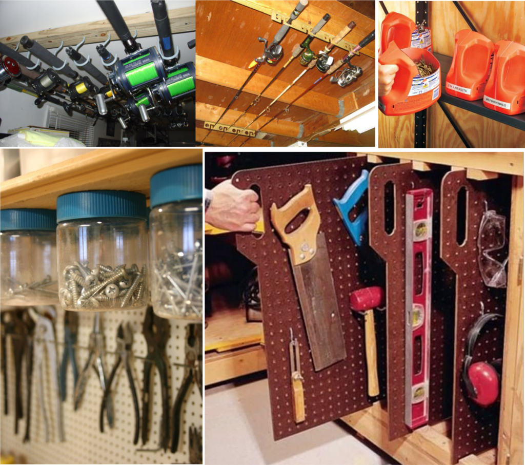 Если вы храните в гараже много инструментов, приобретите или изготовьте полки со специальными отверстиями, в которых можно расположить различные отвертки, перфораторы, мелкий садовый инвентарь и т.д. Такое нехитрое изделие позволит систематизировать хранение самых необходимых инструментов, благодаря чему вы больше не будете тратить время на их поиски.