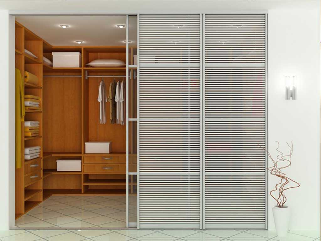 Двери со вставками из жалюзи или полностью выполненные в виде роллета обеспечат хорошую вентиляцию гардеробной.